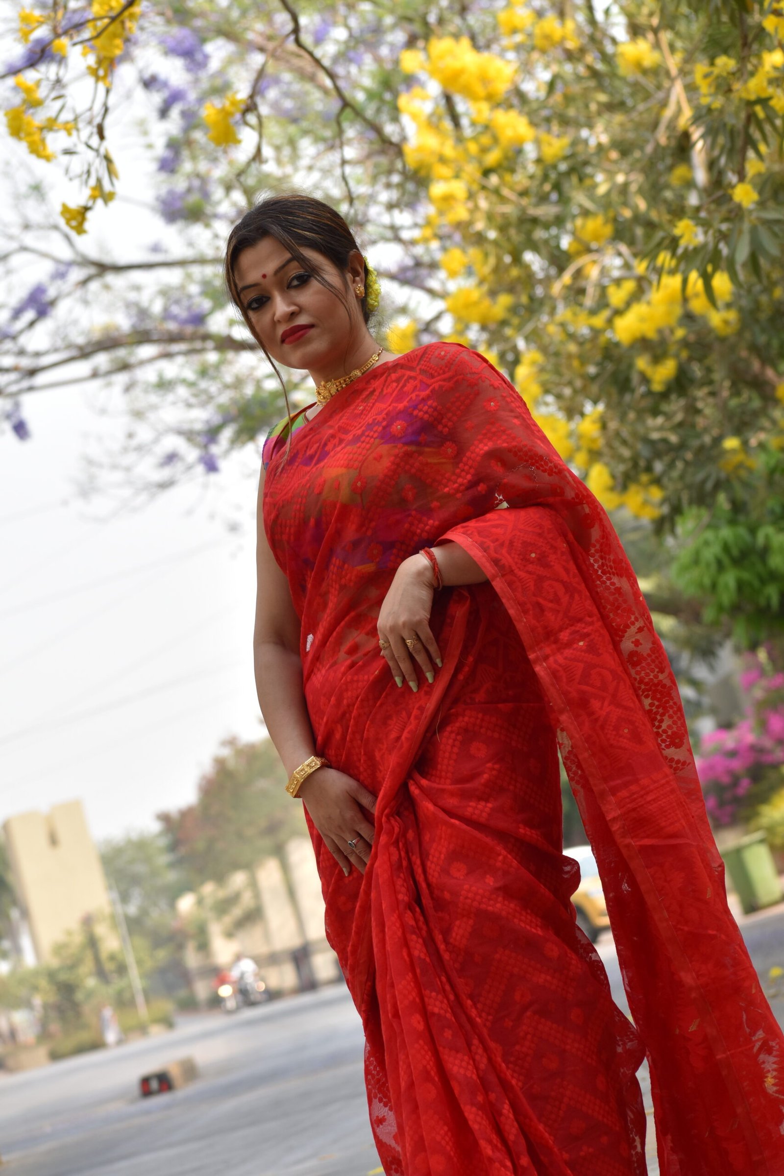 Dhakai Jamdani Red