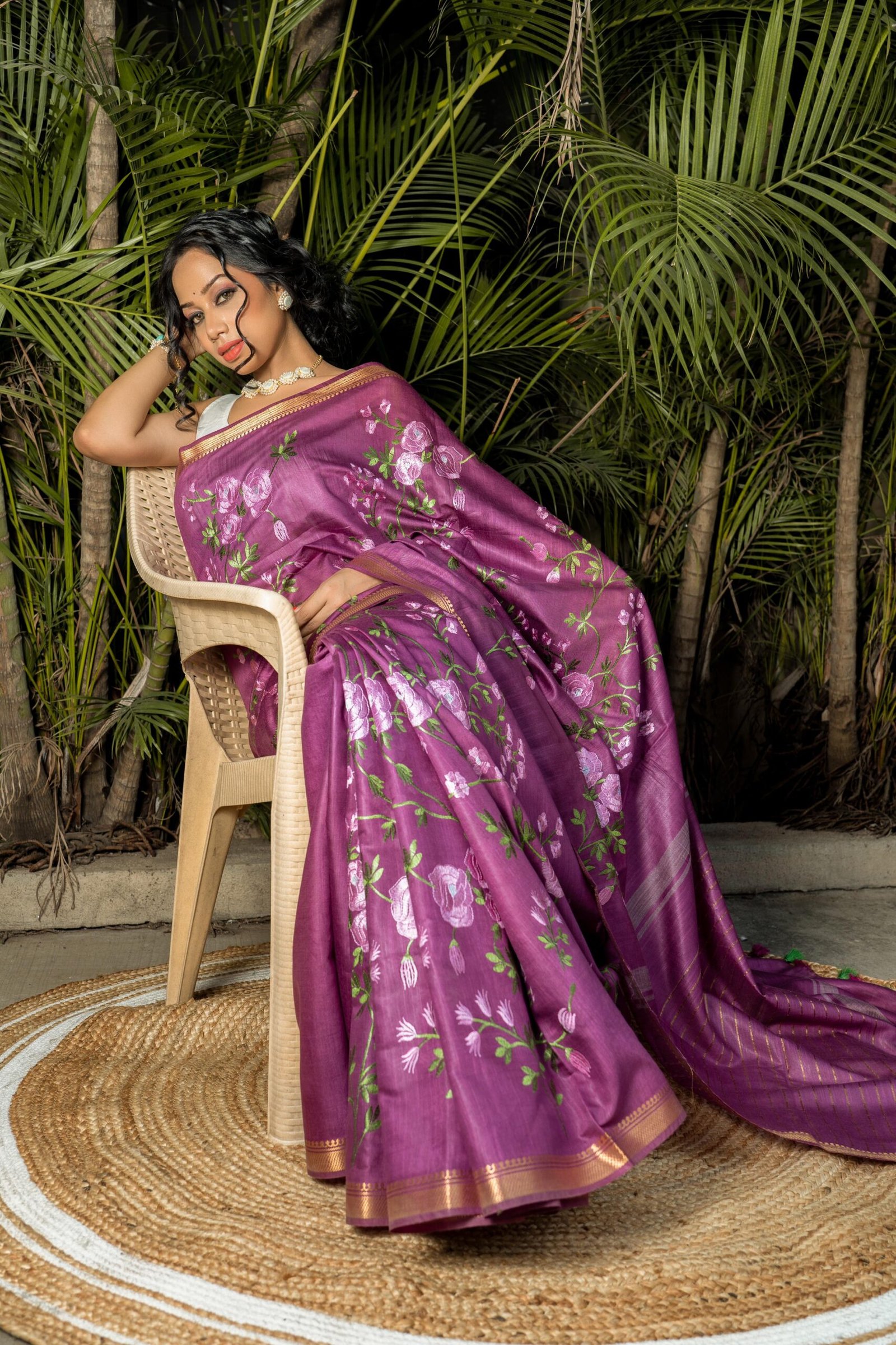 Embroidery Sari, Tusser Silk Embroidery